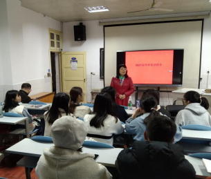 曾谷清副院长结合丰富而生动的现实案例给大家提出三点建议。一是要充分做好复试准备,了解院校信息和面试流程;二是提前关注调剂信息,积极联系导师,虚心请教学长学姐;三是面试时表现自信,注意面试礼仪。最后,李翼老师再次叮嘱各位考生应继续潜心备考,迎难而上,一战成硕。
