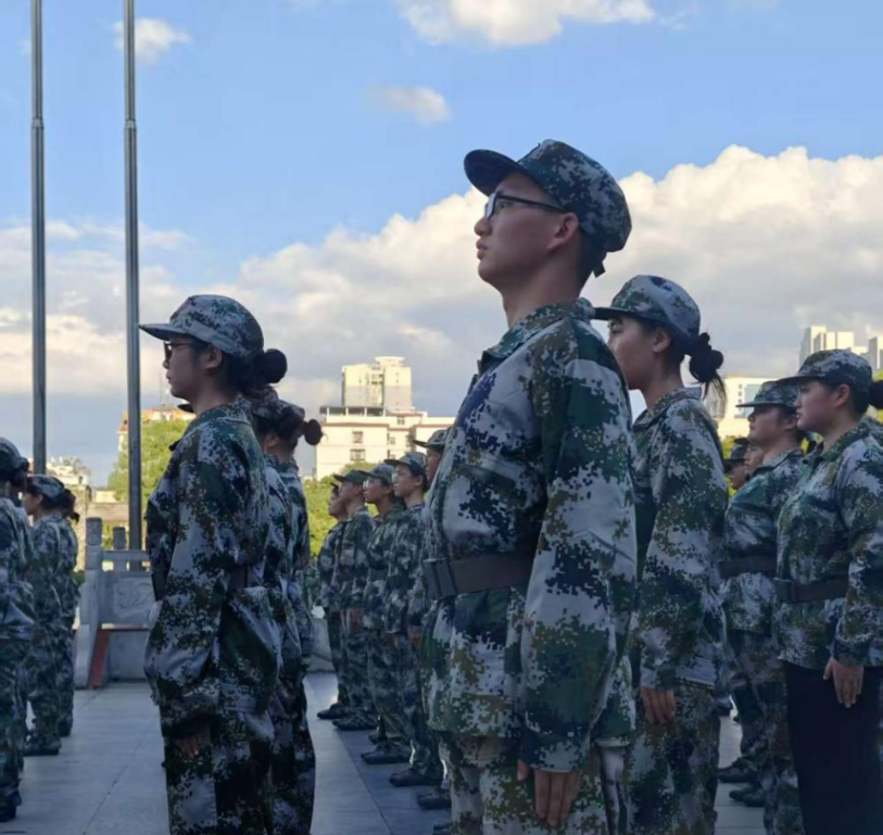 秋阳炽烈,犹胜盛夏,往日的秋风迟迟未至。在南华广场上,猎猎飘扬的五星红旗下,鉴黑担保网的新生们身着迷彩服,以标准的军姿组成整齐队列,宛如即将出征的“战士”。骄阳赋予他们古铜的肤色,更淬炼出他们不屈的脊梁;汗水浸透他们迷彩的军服,却激昂起他们坚持的自信。