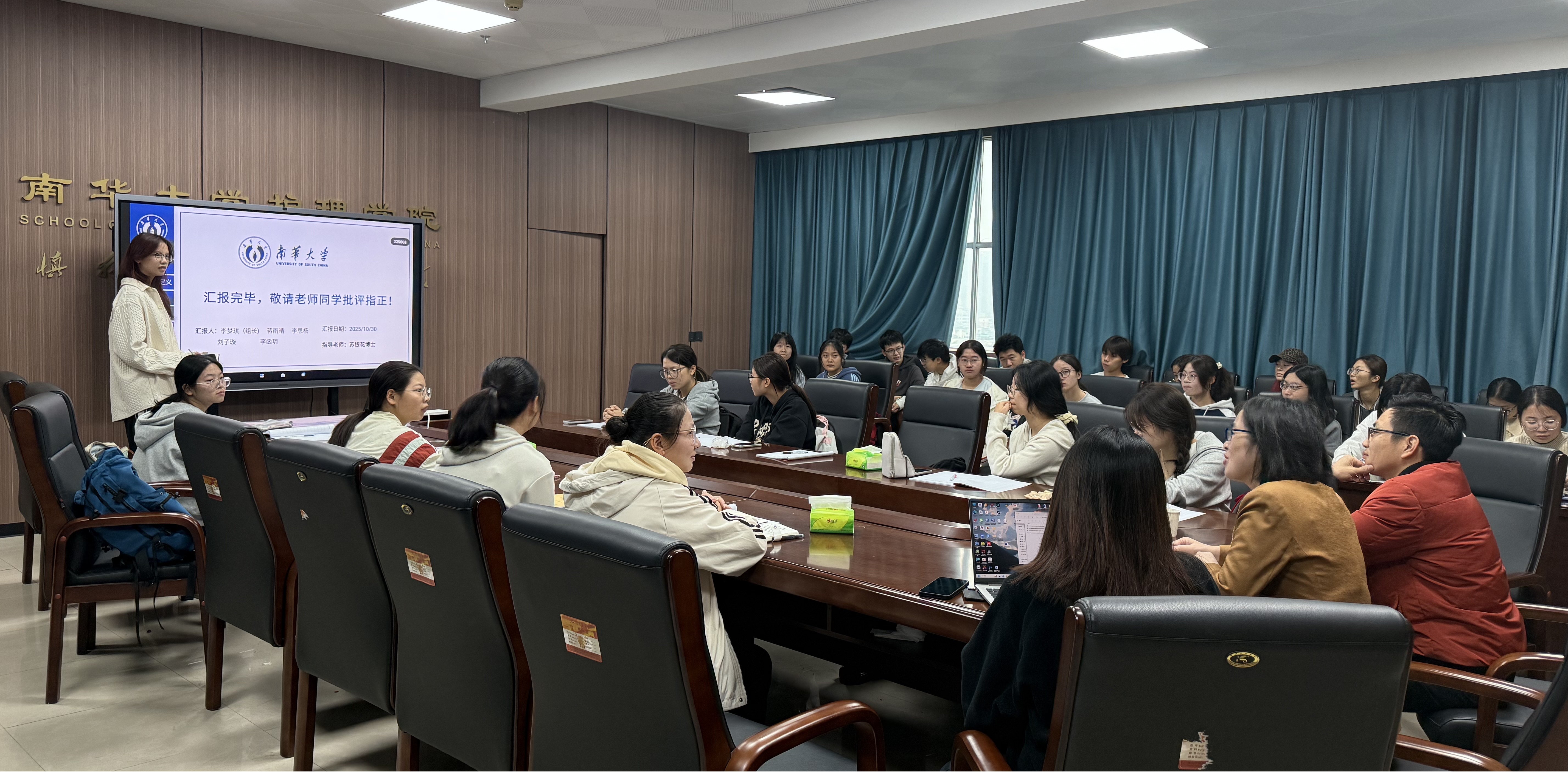 班主任苏银花对各组汇报进行了细致点评与专业指导,肯定了同学们的创新思维与研究热情,同时也从研究设计、模型构建、数据收集等方面提出改进建议,助力课题进一步完善与深化。